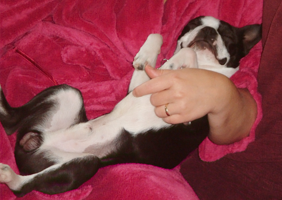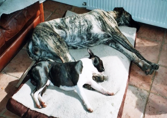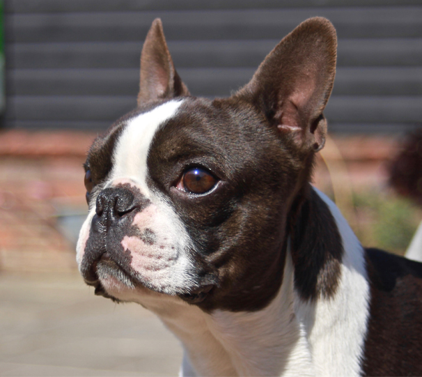 Ch Coppergold Simply a Star ex Norcairn Maid of Mischiefseal brindle & white